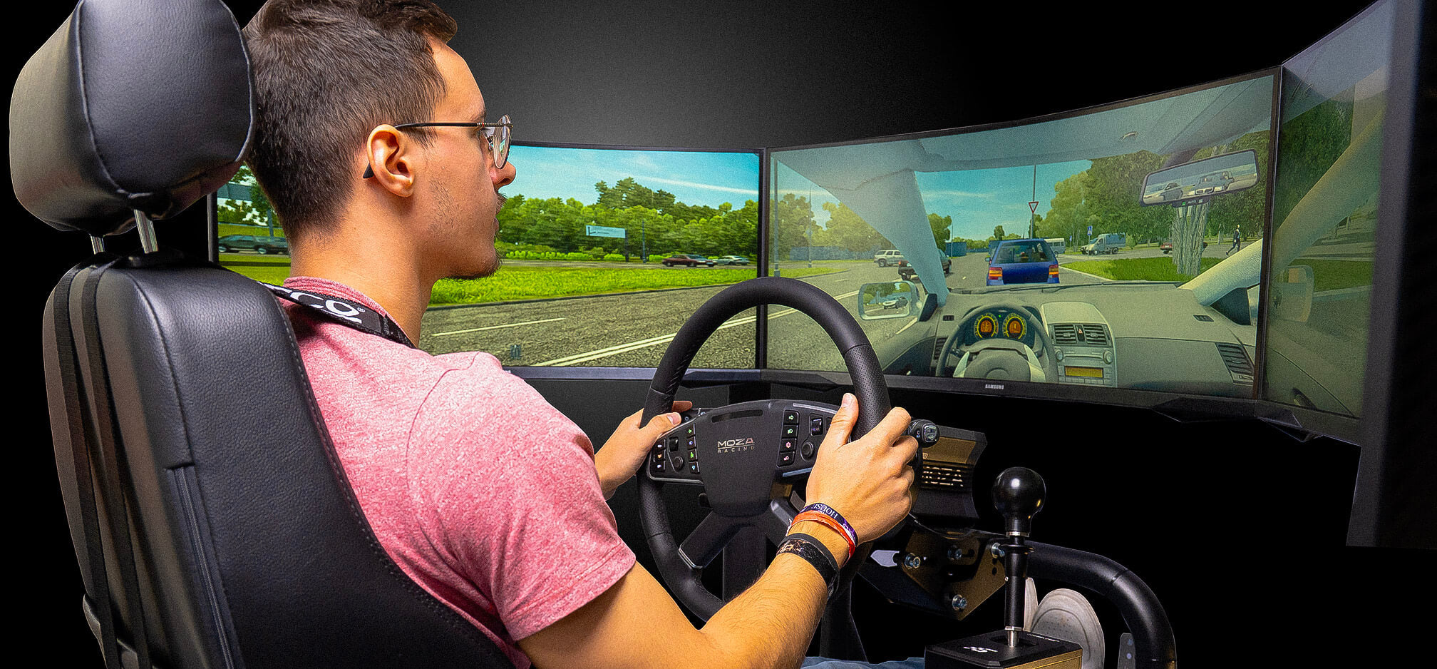 - Écrans 3 x panoramiques : vision élargie avec visibilité latérale réaliste.